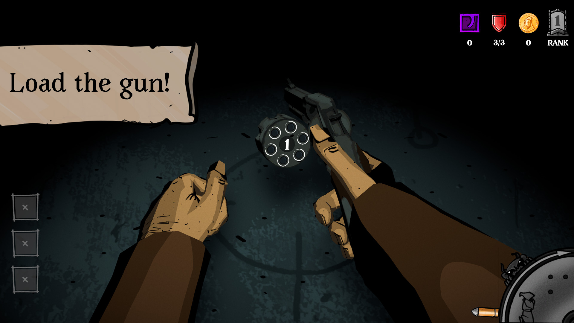 Blessed be the chamber is a tense russian roulette roguelite. Load the gun, pull the trigger and push your luck as you try to climb the cult ranks. Choose rings and use powerful items to increase your odds because even the most faithful must face the chamber.